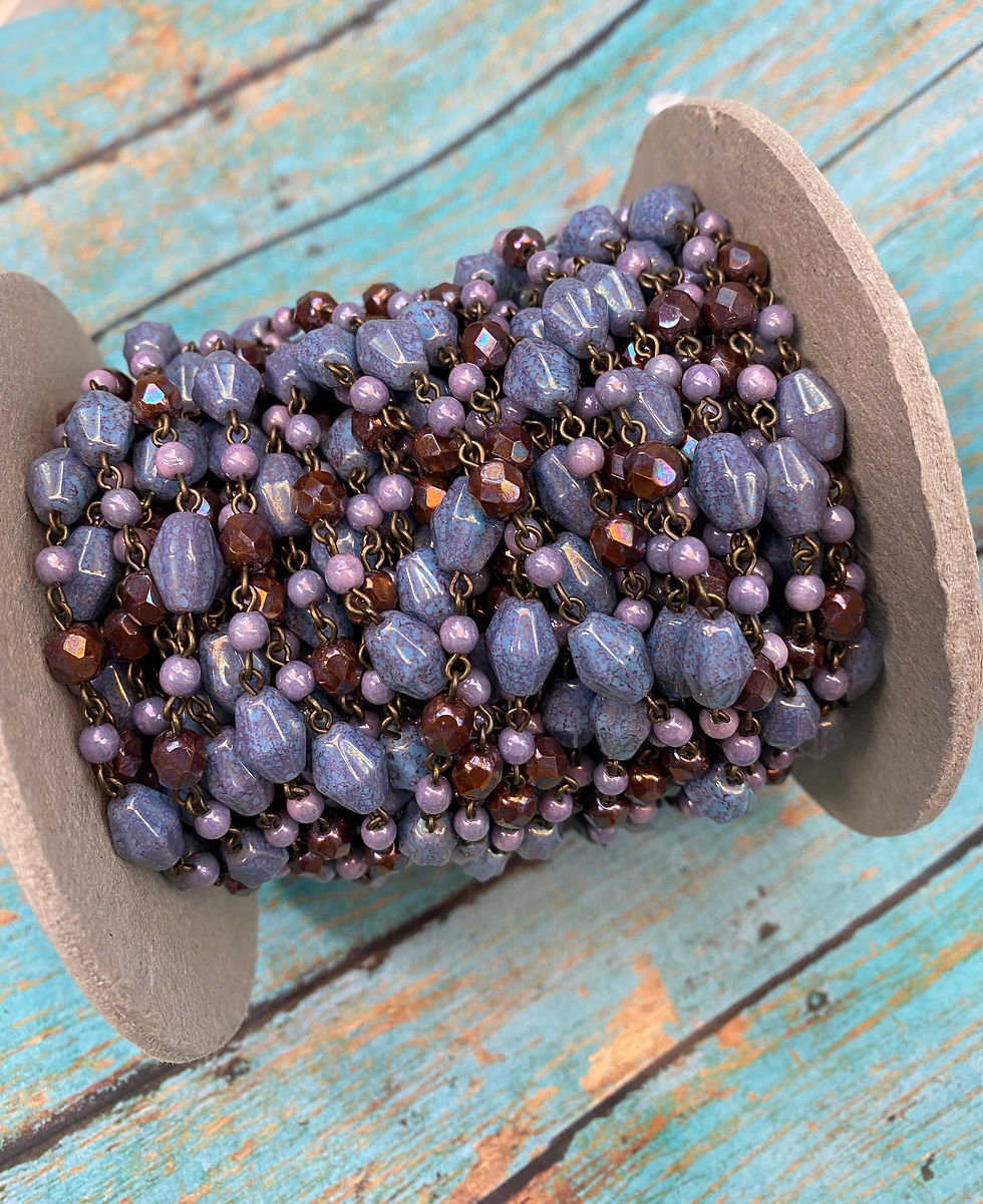 Czech Glass Bead Chain - Blue/Pink/Pearl